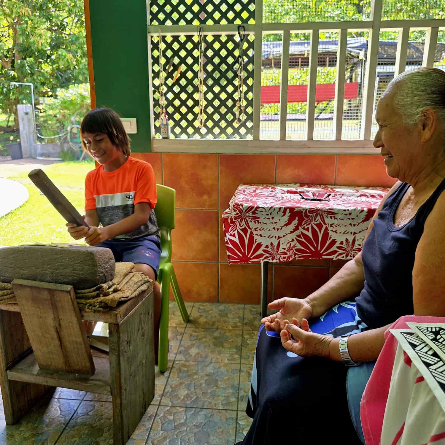Fulaga surprises with its lagoon dotted by tiny islands, resembling to an Indonesian landscapes. Each family member enjoys their favorite activity, from kitesurfing to snorkeling. The perfect shallow kitesurf spot delights everyone, including Charla who made a try, but she definitely prefer to fish. A spearfishing tour provides fish for the village, showing the generosity and welcoming spirit of the locals. These days blend fun, exploration, and cultural connection.